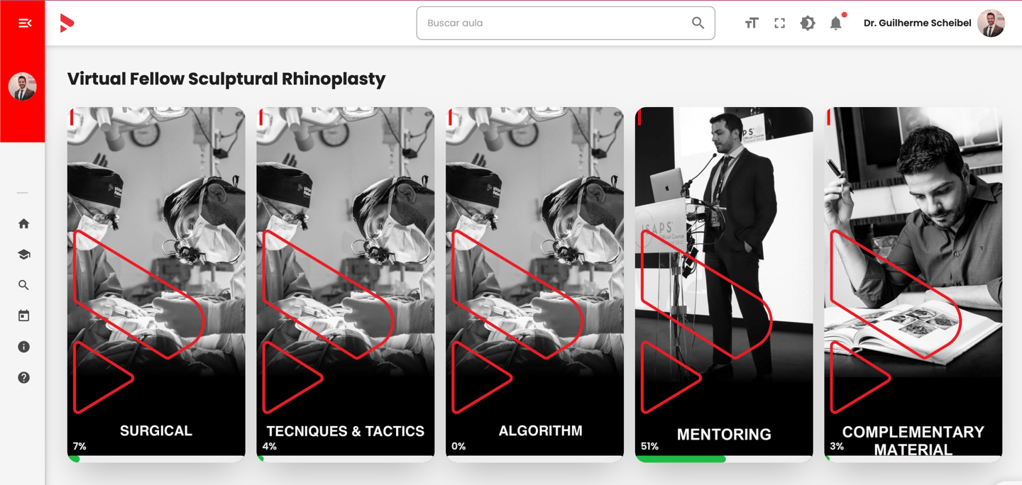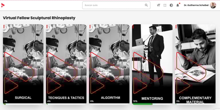Dr. Guilherme também é referência global em ensino. É fundador do Virtual Fellow, o primeiro programa internacional de ensino virtual em rinoplastia que conecta milhares de cirurgiões ao redor do mundo por meio de conteúdos, cirurgias passo a passo e treinamentos, promovendo a difusão de técnicas de alto padrão.